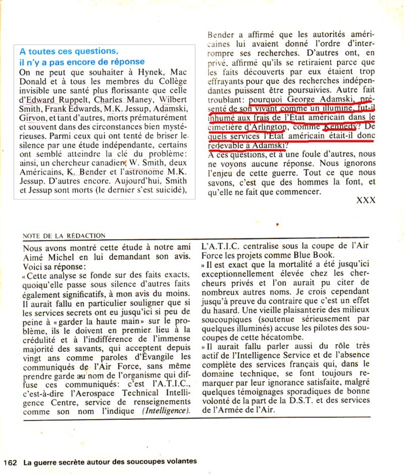 a justement pour objet, pour les puristes qui veulent plus de détails, d'en dire davantage, en transcrivant ici les déclarations d'un membre des Services Secrets Britanniques, que l'on peut alors trouver dans le n° 32 de la revue Planète de Janvier-Février 1967: