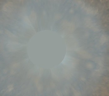 mysterious set of dark clouds at the bottom of the eye."