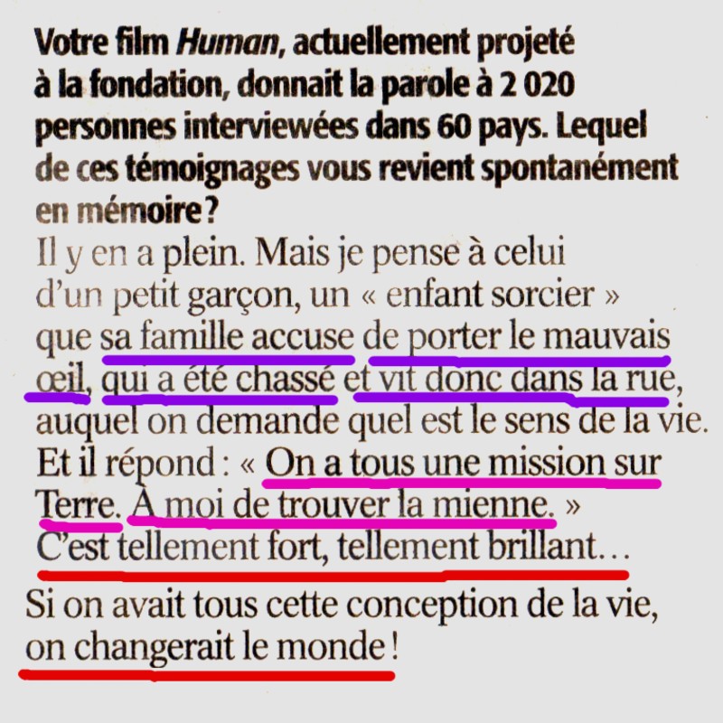 « Tous les êtres humains forment un immense corps qui s’appelle "l’humanité" »,