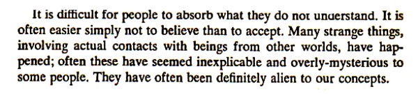 Si l'ouvrage en question, paru en anglais on le sait dès 1955, avait été plutôt écrit comme un roman de science-fiction, il aurait certainement reçu le prix Jules-Verne ( qui fut un prix littéraire attribué de 1927 à 1933 puis de 1958 à 1963, à des œuvres d'aventures et de Science-fiction d'auteurs français), et donc aussi une grande approbation, des médias et autres philosophes, psychologues, psychiatres et consorts assimilés, qui se taisent lamentablement actuellement. Hélàs George Adamski, a loupé ici le coche de la célébrité littéraire fantastique, en refusant la voie de la Science-Fiction, et en prenant, on le sait, à rebrousse-poil, tous ces honorables quidams, qui ne pouvaient dès lors, que le vouer à l'anathème...
