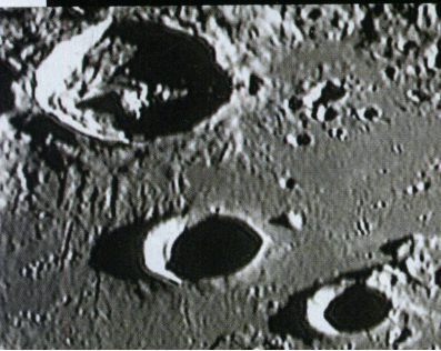 Notons la forme très étrange et l'ombre portée de la structure centrale. D'autre part, on voit que le contrefort de gauche de ce cratère est particulièrement lumineux et blanchâtre et on aimerait bien connaître, quelle est la nature de l'érosion d'un astre pourtant déclaré mort, capable de mettre à vif d'une telle manière, le matériau du sol de ce cratère? Nous attendrons avec ferveur les réponses.