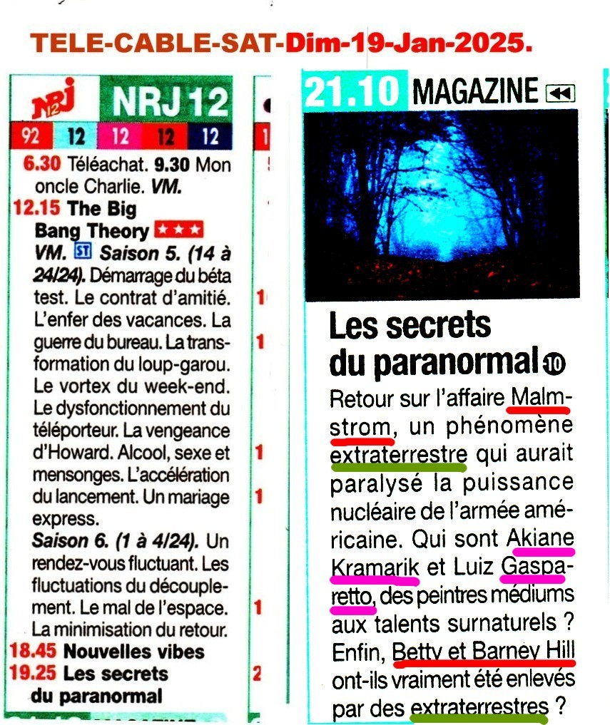 où il est fait état, de l'incontournable affaire ufologique, arrivée en 1975 au bûcheron Travis Walton, dans le Montana aux USA, et affaire qui a fait couler beaucoup d'encre noire et de déchirements psycho-sociologiques, et chose très surprenante, le lendemain même, c'est la chaîne Paramount Network, qui passait le film en question, et, avec une bonne résolution, on pourrait heureusement, voir le replay de ce film hors-norme, le Mardi 28 Janvier 2025, et cela, si vous êtes, dans la grâce des Maîtres de l'Espace-Temps...