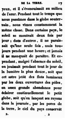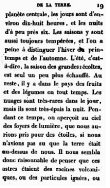 gens vivant à l'intérieur de cette terre. Ils ont atteint à un plus grand développement que nous, et il arrive que certains d'entre eux sortent de la terre dans des véhicules spéciaux".