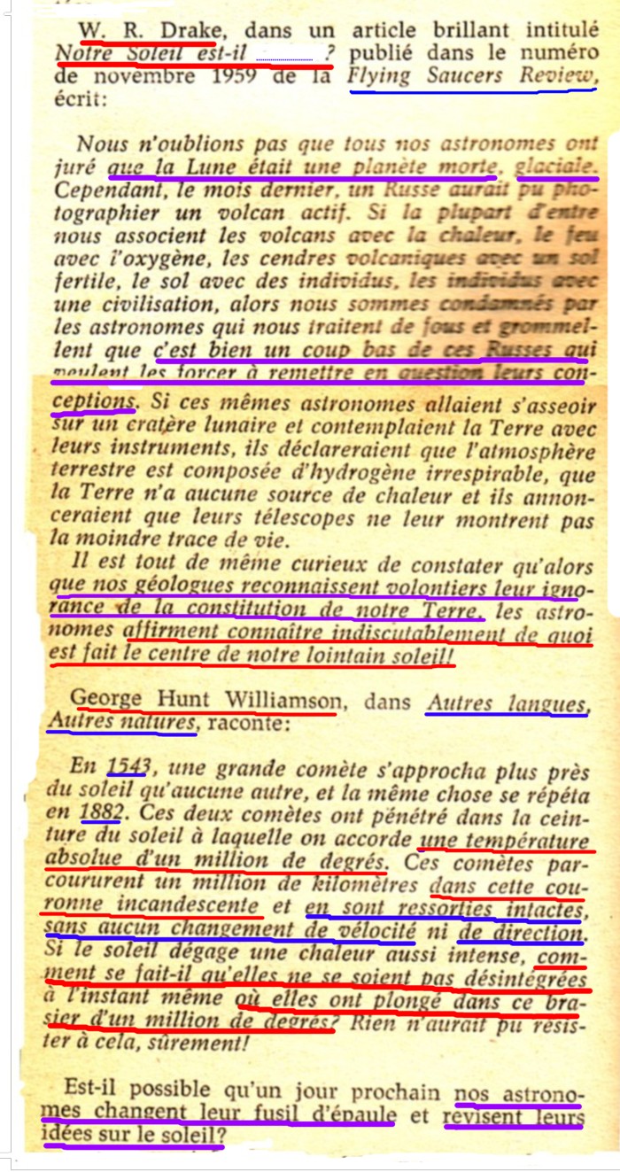 où l'auteur (aussi villipendé par des ignares bien-pensants, que le sieurAdamski ) , affirme au début de la page 150, qu'il est passé en soucoupe volante au large du Soleil tel que :