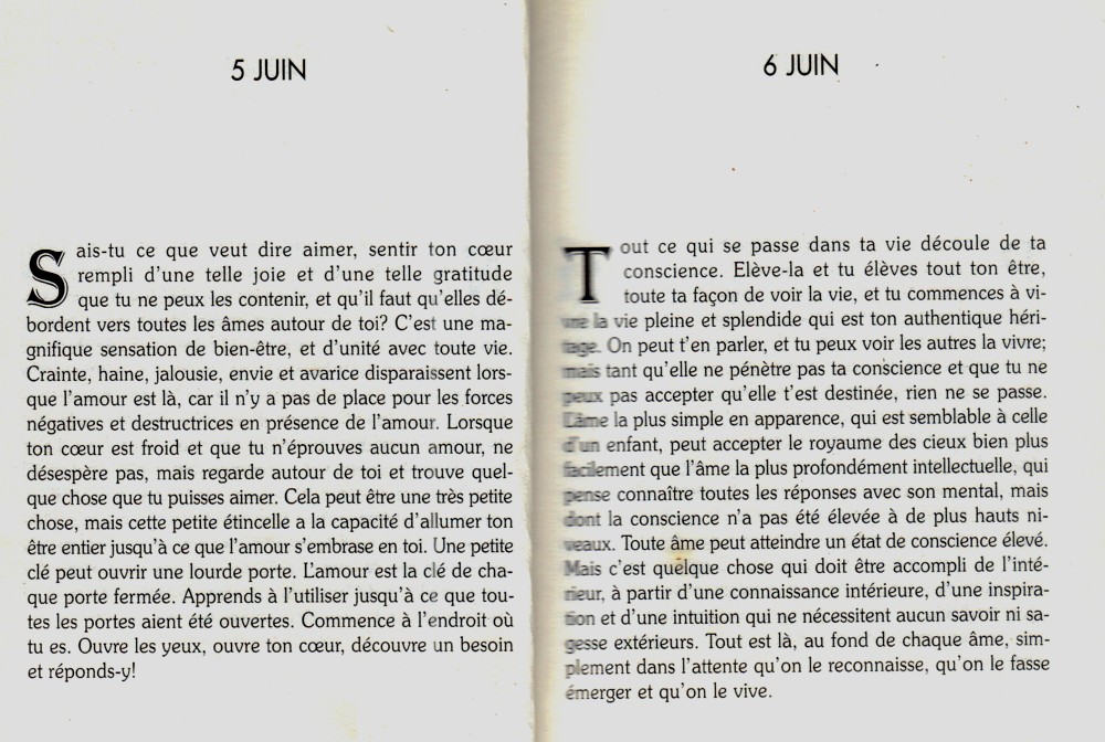 ...La chimie subtile de la rose circule dans les couches d'air, aussi bien celles de la Terre qu'autour ou dans l'éther lointain. Cette chimie véhicule des énergies fines pouvant réactiver l'ouverture d'un cœur (son chakra). Celles-ci s'infiltrent dans le réseau de la chaîne de ce chakra, glissent dans les molécules de l'air et parviennent au cœur de la plus petite parcelle de vos atomes. L'énergie de la rose demeure la nourriture la plus subtile nécessaire à l'apport de la chimie de l'Amour dont a besoin une bibliothèque intérieure.