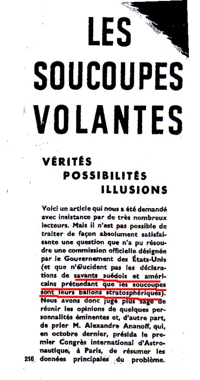 Si nous avons osé, vous montrer ces pages, c'est parcequ'à la troisième, on trouve tout de même une information importante, que nous avons soulignée en rouge :"Y aurait-il eu ailleurs, avant l'affaire Roswell, un autre crash de soupcoupe volante plus tôt ?". Et c'est en effet cela, que nous allons évoquer, plus bas.