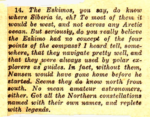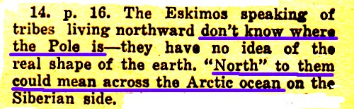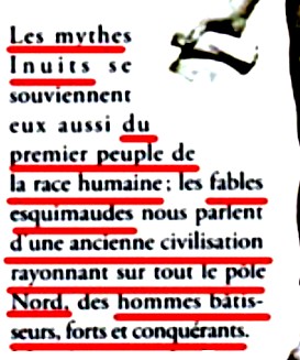 où ils ont pu puiser une si surprenante déclaration, du folklore esquimau, disant que : " ces tribus ont été transportées dans le Grand Nord, à l'origine des temps, par