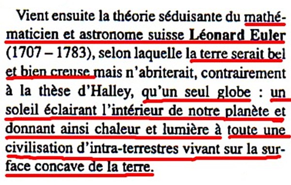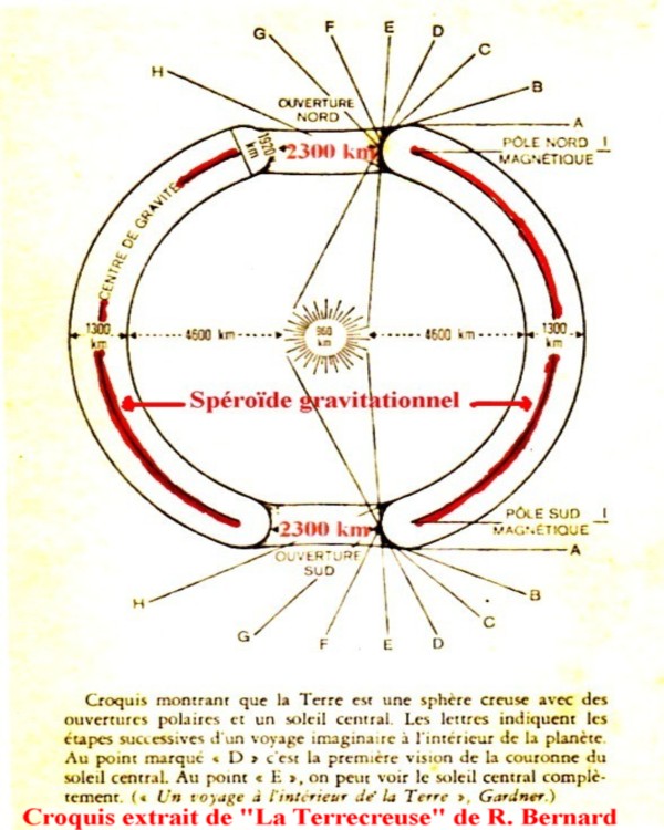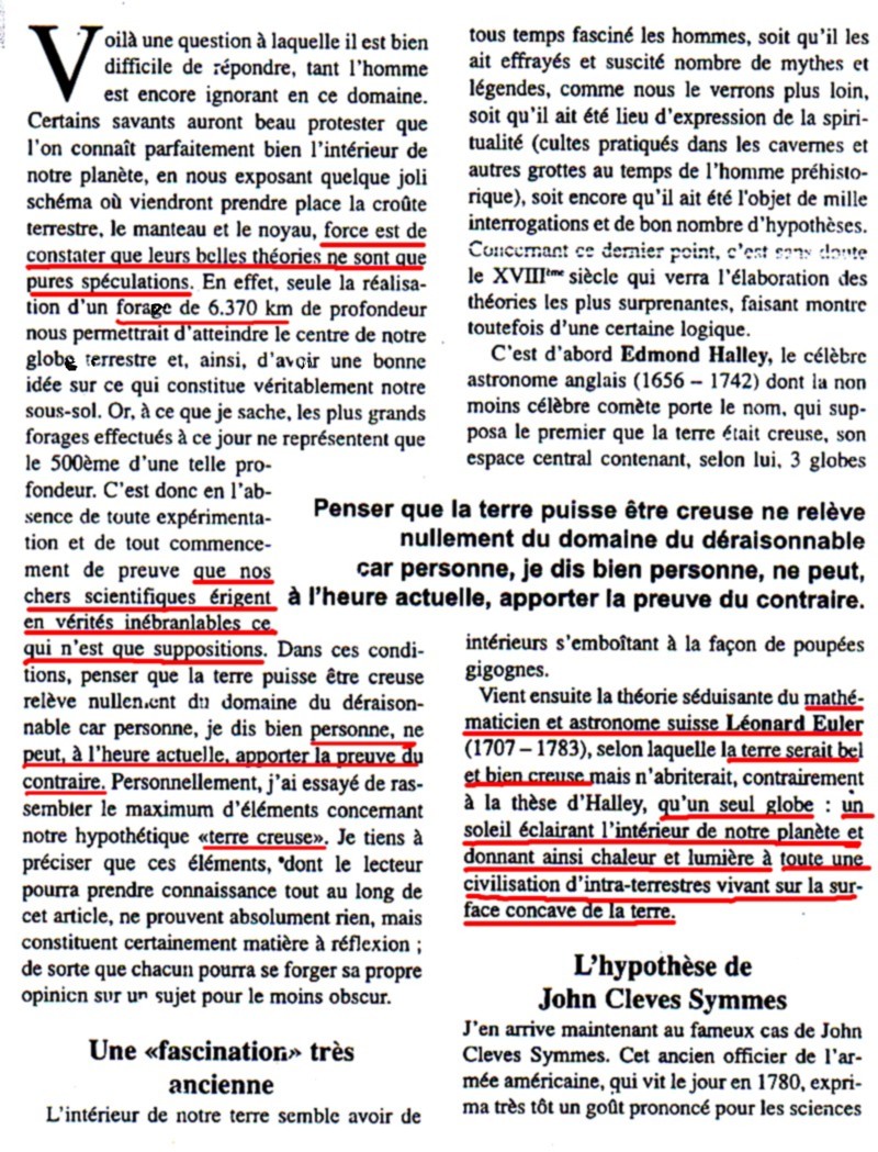 l'immensité du cosmos qui les environne, mais ils montrent le sol, et parlent de certains niveaux à l'intérieur de la terre, d'une bien autre manière que nos savants actuels, qui y placent un torride redoutable feu central, fait de métaux en fusion ...