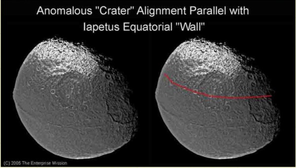 Si l'on sait que ce cratère mesure environ 93 km , un calcul élémentaire donne pour la largeur de l'engin excavateur près de 12,4 km que nous arrondissons volontier à cause de l'imprécision de nos messures à 12 km. Comment donc il se fait, qu' un engin de près de 12 km, est passé totalement inaperçu dans les colonnes des revues d'astronomie et consorts analogues ? A vous de juger ..