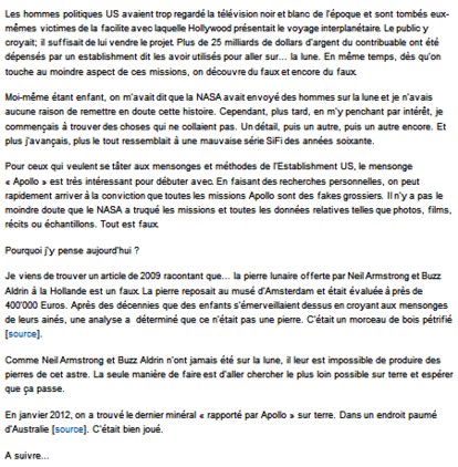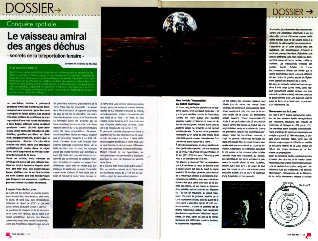 Les Gouvernants, cachent donc au monde entier, le fait que la Lune est habitée, depuis des lustres, et cela pour de vulgaires questions de stratégies militaires et d'hégémonie politique et économique .
