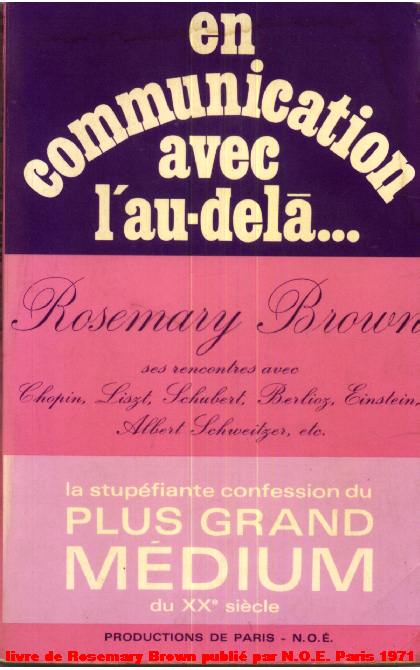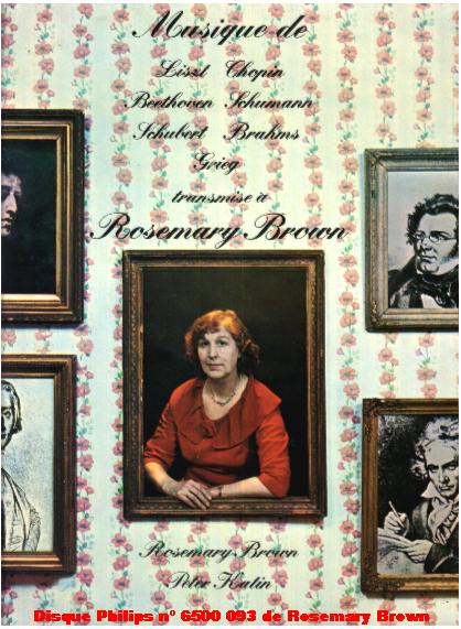 I Introduction.Il n'est pas besoin d'être sorti de la cuisse de Jupiter ou d'être un agrégé de psychologie ou de philosophie pour s'apercevoir que nous sommes arrivés à la fin d'une ère et que probablement après de sévères tribulations (les catastrophes en cascades qui arrivent ces temps-ci ne sont pas dues, à notre avis, au hasard) une ére nouvelle va apparaître. En effet les médias mêmes, qui dédaignaient nous entretenir de certains domaines (paranormal, après-vie, ovnis etc..) s'y précipitent volontier actuellement, à leur manière bien sur, et par exemple on est bien obligé de se poser des questions quand on découvre dans la revue Science&Vie des articles sur les pierres des grandes pyramides égyptiennes qui seraient peut-être synthétiques, ce qui implique une révision déchirante de notre conception historique de l'Egypte ou encore quand on trouve dans cette même revue dans son n°1018 de Juillet 2002, un dossier de 18 pages, très documenté et bien scientifiquement argumenté et intitulé"Sur la piste des mondes parallèles "domaine que nous avons déjà évoqué, ésotériquement parlant cela va s'en dire, d'une manière tout à fait différente dans notre article : http://www.artivision.fr/unipara.html ).Compte tenu de tout cela, aujourd'hui, il nous vient intuitivement l'idée, de quitter provisoirement les contours de la Lune et les photos bizarres de la NASA, pour nous intéresser à ce domaine parapsychologique que nous avons à peine effleuré dans certains articles comme par exemple "le retour aux sources" et cela va encore nous transporter aux abords du fantastique inimaginable pour quelqu'un imprégné de culture européenne classique et surtout pour celui qui attend que les médias qui ont pignon sur rue dans cette region où règne le doute cartésien, veuillent bien lui en parler. Et pourtant les preuves palpables et incontournables sont à la mesure du phénomène que nous allons maintenant aborder et qui prouve encore une fois que la réalité dépasse de loin la fiction la plus débridée. Il s'agit d'œuvres parfaitement tangibles provenant d'un autre univers que certains appellent l'Au-delà, faute de savoir où il se trouve. Précisons cependant en passant, que notre rôle n'est pas de vous prouver que cet Au-delà existe ou non (les scientifiques à l'esprit ouvert, qui se posent, maintenant, comme vous venez de le voir plus haut, des questions pertinentes sur les univers parallèles, s'en chargeront en temps utile), mais bien de vous faire savoir, qu'il existe des œuvres et des créateurs dont on préfère ne pas parler dans les milieux mêmes qui devraient s'énorgueillir de leur présence. Alors veuillez attachez vos ceintures, nous allons franchir le "voile" qui nous sépare, de l'autre côté du miroir... II Genèse de l'affaire.a) Musicalement Vôtre. En 1970 en effet, la grande Presse écrite européenne s'est faite l'écho de la sortie de l'étrange disque Philips sous la forme d'un album de 30cm n° 6500 093, d'une certaine Rosemary Brown, femme de ménage dans une école communale d'un quartier londonien, qui connaissant à peine le solfège, a appris très tardivement à jouer au piano de simples morceaux de musique. Tout serait cependant normal si Rosemary qui peut composer sa musique en public, à une vitesse surprenante, n'avait pas avoué que c'était les musiciens décédés eux mêmes, qui guidaient sa main et que de plus, elle les voyait placés à ses côtés quand elle composait leur musique. Sur cet album Rosemary interprète sur la deuxième face, 8 courtes œuvres de musiciens célèbres dont 5 de Liszt, une de Schumann, de Chopin et de Grieg. La première face, elle, contient aussi des œuvres plus complexes de Liszt, de Chopin, mais aussi de Beethoven, et de Brahms qui sont interprétées par un musicien de talent Peter Katin car Rosemary n'avait pas à cette époque la dexterité requise pour les jouer. Les plus éminents musicologues et chefs d'orchestre anglais dont les nombreux noms figurent sur l'album, ont essayé évidemment de confondre Rosemary. En vain ! Ils ont tous reconnu que les œuvres produites étaient bien conformes au style des musiciens en question. Et puis c'est tout. Où il aurait dû avoir un vrai débat de toutes les grandes chaines de Télévision et autres médias bien structurés, ce fut le silence total malgré la sortie en France en 1971 d'un ouvrage remarquable (voir l'image ci-dessous) et nous ne savons même pas ce qu'est devenue Rosemary Brown qui à l'époque avait autour de 47 ans et qui avait déjà composé plus de 400 œuvres nouvelles : Chants, pièces pour piano, quatuors pour cordes, concertos symphonies et même des opéras. (Voir ci-dessous le disque et le livre en question :) ![]() Et voici le verso de la pochette musicale où apparaissent les 16 morceaux musicaux choisis : ![]() Hélas nous ne pouvons que vous faire entendre qu'un seul de ces morceaux musicaux et nous avons choisi "Shepherd piping" de Grieg. Et évidemment nous vous demandons une grande indulgence pour les petits crachements du microsillon, que nous ne pouvons hélas supprimer, n'ayant pas le matériel pour cela. (prière de baisser le son à moitié au moins, pour en diminuer l'effet. Mais le 6/08/07 l'aimable internaute Guy R....., après un travail considérable a réussi à supprimer ces crachements. ARTivision et Rosemary Brown sans doute ne sauront jamais assez le remercier pour cela...) Donc cette désormais octogénaire, si elle est encore vivante et qui doit avoir depuis dépassé le millier d'œuvres, a été purement et simplement oublié par ces messieurs les amateurs de scoups journalistiques dérisoires et qui pourtant tenaient là une raison d'aller jusqu'au bout de leurs tentatives d'explications: Oui ou non s'agit-il de partitions musicales retrouvées par hasard dans quelques malles ou greniers ? Eh bien non Rosemary les compose devant eux et ils peuvent aller les faire jouer immé