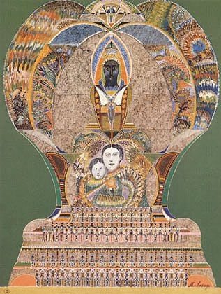 Comme vous vous en apercevez, il faudrait vraiment être de mauvaise fois pour ne pas admettre que ce peintre , habitué à casser dans des profonds couloirs poussiéreux, les veines houillères du Nord de la France, a bien été " souverainement inspiré et guidé " par une main parallèle issue d'un autre monde qui existe bien, selon nous, quelque part. En Novembre et Décembre 1990 nous avons enregistré une importante emission du petit écran, intitulé "les Chants de L'invisible" (voir l'ouvrage du même titre qui en parle de Bernard Martino publié en J'ai lu l'aventure secrète n° 3228) où l'on découvre filmé en direct et sans coupures du film, le brésilien, Luis Antonio Gasparetto entrain de peindre, en mélangeant les couleurs à la main, sans pinceau, des œuvres signées de Manet, Monet, Modigliani, Picasso, etc...Il lui arrive même de peindre dans le noir total et aussi de peindre un tableau complètement à l'envers, c'est à dire qu'il faut retourner de bas en haut ce tableau, pour voir de quoi il s'agit. Et tout cela à une vitesse inouie. Nous n'avons, hélas, ici, que des images peu colorées à vous montrer, images que nous tirons cependant avec reconnaissance, de la revue Le Monde Inconnu n° 47 de Février 1984 des photos de Mme Odile Jacquot que nous félicitons grandement de nous avoir laissé ce surprenant témoignage de son passage chez ce peintre extraordinaire : ![]()