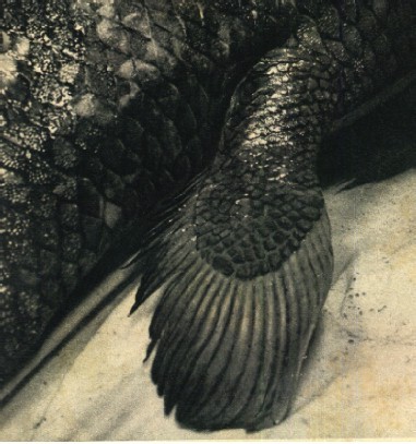Crossoptérygien or c'est un groupe essentiellement fossile que l'on croyait éteint depuis le Crétacé supérieur. Ce groupe présente un intérêt énorme, car les évolutionnistes le considèrent, non sans raison, comme la souche de certains Batraciens. C'est ainsi que l'on se demande encore, à l'heure qu'il est, si ces poissons ne possédaient pas de poumons. Il aurait été facile de s'en rendre compte sur celui de 1938. Hélas! on oublia de le disséquer, ou mieux on négligea de regarder ses organes internes, quand on le vida pour l'empailler, de sorte que le seul Crossoptérygien qu'on ait trouvé vivant gît au musée du Cap tel un immense hareng-saur. On le baptisa Latimeria chalumnae d'après ses écailles, il devait avoir entre vingt et vingt-cinq ans. Cette découverte unique n'a pas donné tout ce qu'on pouvait espérer, et tous les zoologistes éprouvaient un serrement de cœur à la seule mention du Latimeria. (Photo
